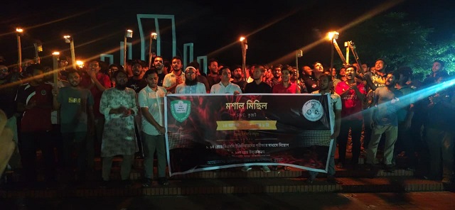 খুলনা প্রকৌশল ও প্রযুক্তি বিশ্ববিদ্যালয়ের (কুয়েট) স্টুডেন্টস ওয়েলফেয়ার সেন্টার থেকে বের হয়ে শুরু হয় একটি জ্বলন্ত মশাল মিছিল। বিশ্ববিদ্যালয়ের শিক্ষার্থীরা ক্যাম্পাস প্রদক্ষিণকালে “১‑২‑৩‑৪, ডিপ্লোমা‑তুই কোটা ছাড়”, “ইঞ্জিনিয়ার বানান কর, চাকরির