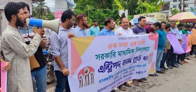 এন্ট্রি পদ নবম গ্রেডের এক দফা দাবিতে লক্ষ্মীপুরে মানববন্ধন করেছে সরকারি মাধ্যমিক বিদ্যালয়ের শিক্ষকরা। আজ বুধবার (২০ আগস্ট) দুপুরে লক্ষীপুর প্রেস ক্লাবের সামনে জেলা সরকারি মাধ্যমিক শিক্ষক পরিষদ এ আয়োজন