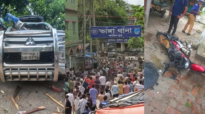 ফরিদপুরের ভাঙ্গায় আসন পুনর্বিন্যাসের প্রতিবাদে ভাঙ্গা উপজেলা পরিষদ ও ভাঙ্গা থানায় হামলা-ভাঙচুরের অভিযোগ উঠেছে বিক্ষোভকারীদের বিরুদ্ধে। পুলিশ সদস্যরা পরিস্থিতি নিয়ন্ত্রণ করতে গেলে জনতার ধাওয়া খেয়ে মডেল মসজিদে আশ্রয় নিয়েছেন বলে