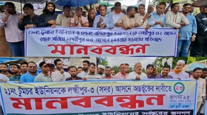 লক্ষ্মীপুর সদর উপজেলার টুমচর ইউনিয়নের সংসদীয় আসন বিন্যাসের দাবিতে পক্ষে ও বিপক্ষে মানববন্ধন অনুষ্ঠিত হয়েছে। আজ শনিবার (২৩ আগস্ট) সকাল ১১টার দিকে লক্ষ্মীপুর প্রেসক্লাবের সামনে পৃথক দুটি মানববন্ধন কর্মসূচি পালন বিস্তারিত..
