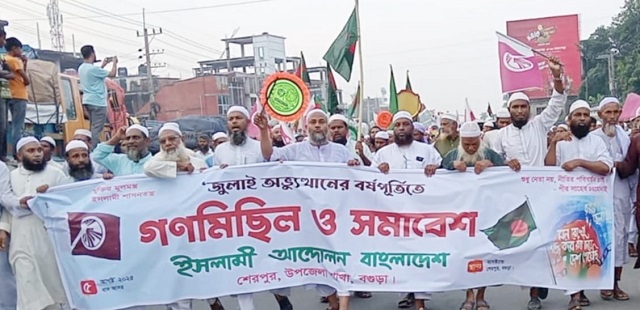 বগুড়ার শেরপুরে ইসলামী আন্দোলন বাংলাদেশ-এর উদ্যোগে স্বৈরাচার পতন দিবস উপলক্ষে বিশাল গন মিছিল ও সমাবেশ অনুষ্ঠিত হয়। আজ (০৫ই আগষ্ট) মঙ্গলবার বাদ আসর ইসলামী আন্দোলন বাংলাদেশ বগুড়া জেলা শাখার আওতাধীন