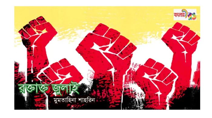 রক্তাক্ত জুলাই মুমতাহিনা শাহরিন রক্তে রাঙা সেই চব্বিশে জুলাই, আকাশ কেঁদেছিল, কেঁপে উঠেছিল ধূলিকণার গায়। পথঘাট, মিছিল, স্লোগানে ছিল আগুন, শহীদরা হাঁটছিলেন হাতে হাতে, ছিল না কারো ঘুম। বুকে ঝাঁপিয়ে